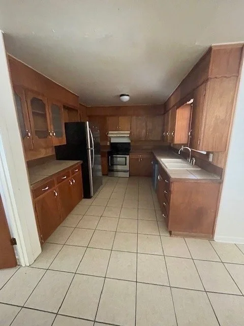 A spacious 3-bedroom, 2-bath, ranch-style brick home featuring tile floors, rich dark-wood accents, an attached 2-car garage, and a large driveway with ample parking. This home offers plenty of room along with comfortable, convenient living.